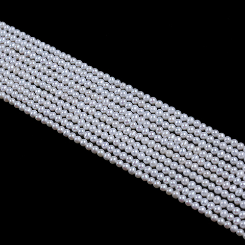 卸売ホワイトカラー3-3.5mm天然ラウンド淡水パールビーズストランドジュエリー作り用