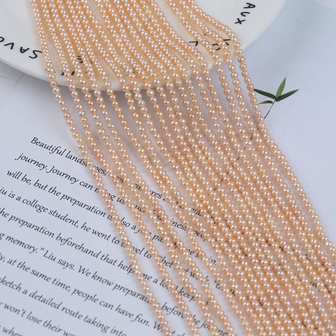 3-3.5mm天然ピンク色淡水近く丸い真珠ビーズストランドジュエリー作り用