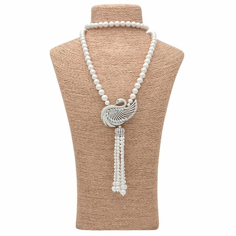 Süßwasser Perle Braut schmuck Set 18 Karat vergoldet Wasserwellen kette Anhänger Halskette Quaste Ohr stecker
