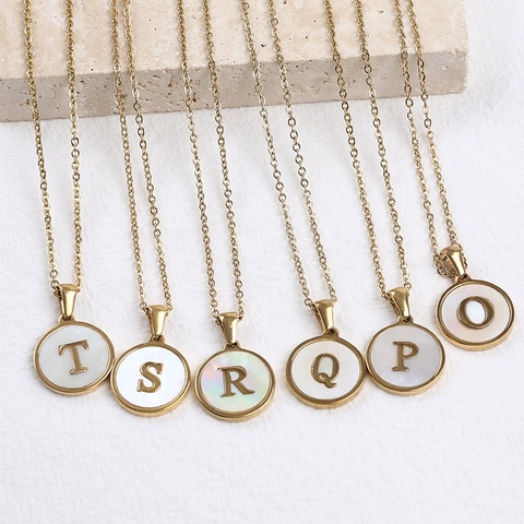 Verstellbare Frauen Choker Coin Halskette Vergoldete Perlmutt Anhänger Kette 26 Buchstaben Initial Halskette