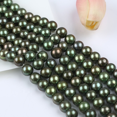Fio de pérolas para água doce aaa 7-8mm, corda de miçangas verdes e metálicas
