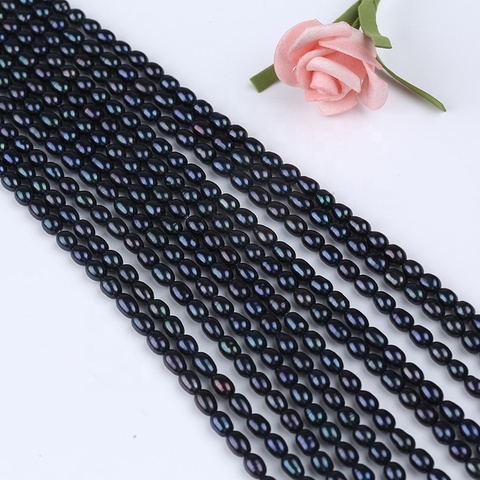 Contas de água doce em forma de arroz, 4-5mm, dyed, preto, pérola no fio solto, atacado