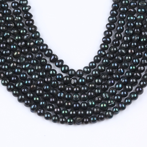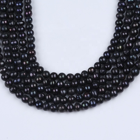 Heißer Verkauf 3-3, 5/3, 5-4/4-5mm gefärbte schwarze Farbe Süßwasser perle Kartoffel form Perlen Stränge Großhandel