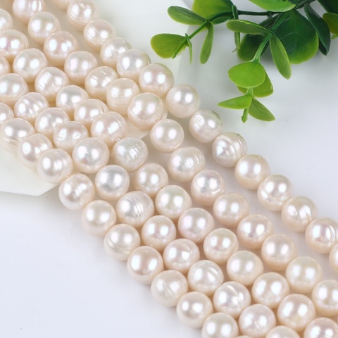Großhandel 11-12mm natürliche weiße Farbe Kartoffel Süßwasser Perle Perlen Stränge Schmuck 1,5mm Loch