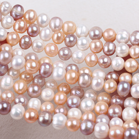 Großhandel 9-10mm natürliche gemischte Farbe Kartoffel Süßwasser Perle Perlen Stränge Schmuck