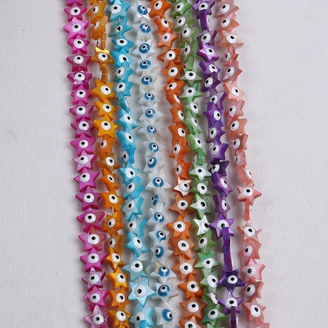 Madre Natural de perlas de doble cara de estrella de cinco puntas mal de ojo de cuentas Strand