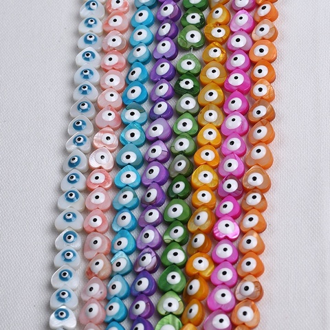 Cuentas de corazón de amor de doble cara, abalorios de ojo malvado de moda, cuentas de concha Natural, hilo colgante artesanal, accesorios de joyería