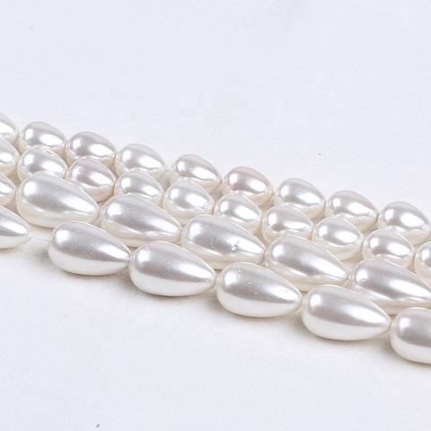 Cuentas de concha de perla para fabricación de joyas, en forma de gota blanca natural, 12x16mm/14x25mm, venta al por mayor