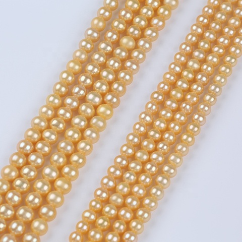 7-8Mm/8-9Mm Geverfd Zuid-Oceaan Goud Kleur Zoetwater In De Buurt Van Ronde Parels Kralen Streng Voor Sieraden Maken