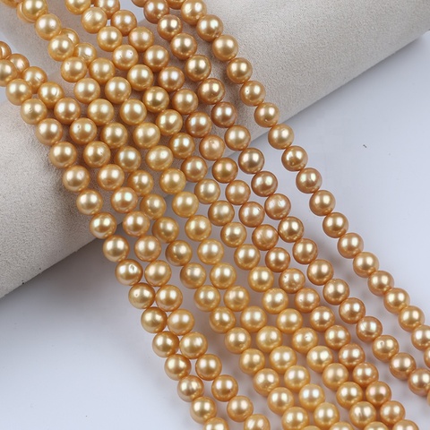 8-9Mm Geverfd Goud Kleur Zoetwater Ronde Parels Kralen Streng Voor Sieraden Maken Groothandel