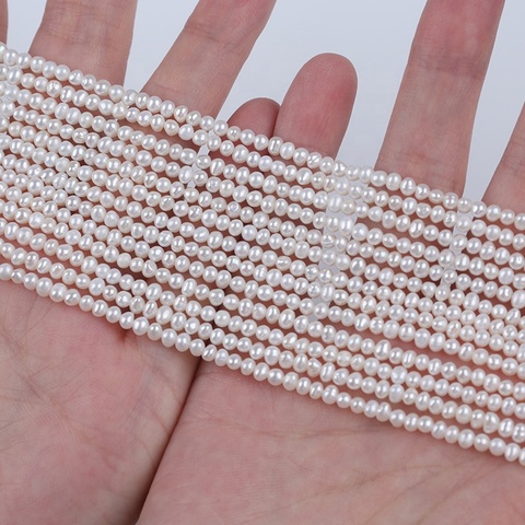 Groothandel Witte Kleur 3-3.5Mm Natuurlijke Ronde Zoetwaterparel Kralen Streng Voor Het Maken Van Sieraden