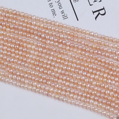 3-3.5Mm Natuurlijke Roze Kleur Zoet Water In De Buurt Van Ronde Parels Kralen Streng Voor Sieraden Maken