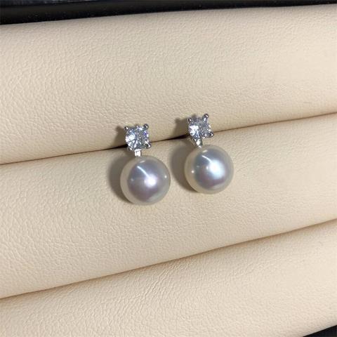 Trendy Zirkonia Sterling Silber Perlen ohrring Natürliche Perlen ohrringe