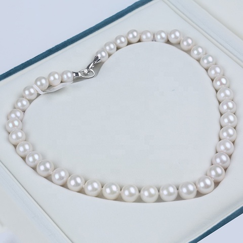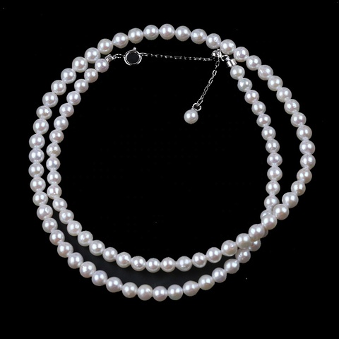 عقد من اللؤلؤ الأبيض الطبيعي الدائري 3-من الفضة للنساء بسعر الجملة