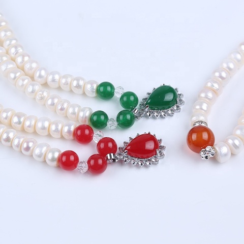 قلادة من اللؤلؤ للنساء, قلادة من اللؤلؤ للنساء من 9 إلى 10 ألوان طبيعية بثلاثة ألوان مختلفة من لؤلؤ المياه العذبة الباروكي ، سلسلة كنزة كلاسيكية للنساء