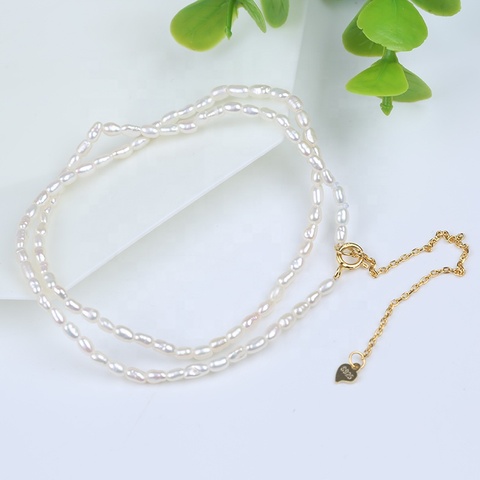 الجملة مجوهرات 2-2.5 مللي متر الحقيقي الطبيعي المياه العذبة الأرز عقد من اللؤلؤ النساء هدية 925 مشبك فضي