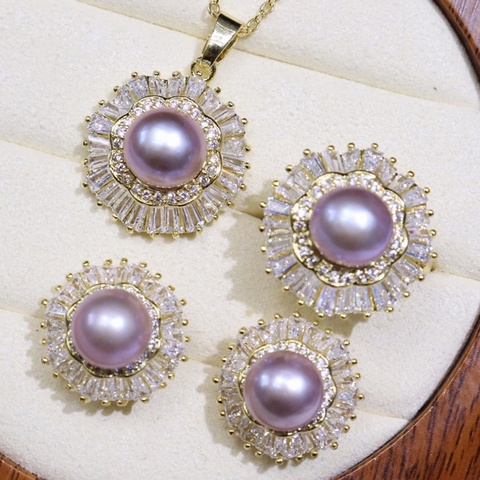 Jóias de pérola natural genuína, conjuntos de jóias de pérola natural para água doce perto de casamento