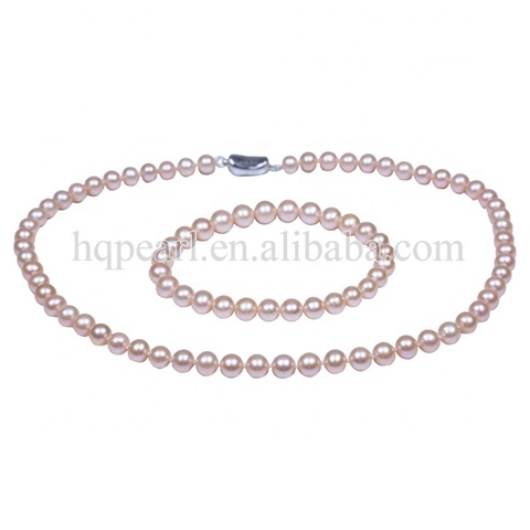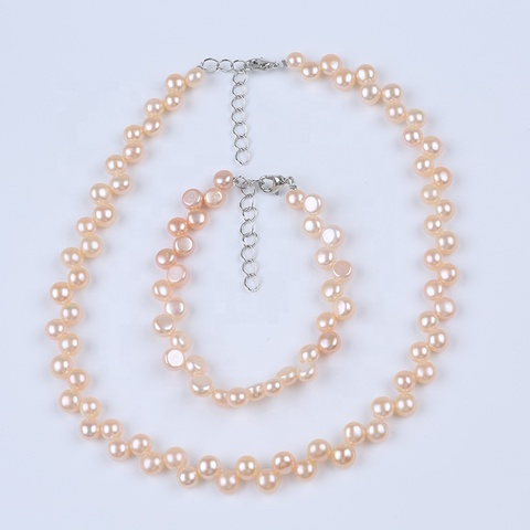 Moda real de água doce botão colar pulseira conjunto 6-7mm rosa cor pérola natural jóias conjuntos para as mulheres