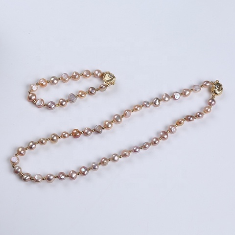 Pulseira de pérola, moda 7-8mm, natural, barroco, água doce, colar, joias, conjunto para mulheres