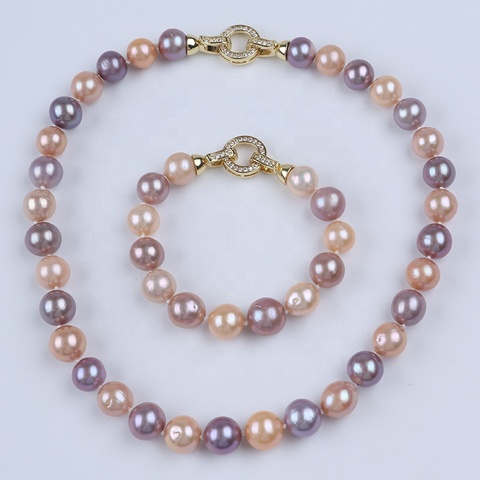 10-13mm Natural Freshwater edison rosa roxo cor misturada pérola colar pulseira jóias conjunto para as mulheres