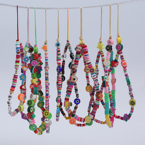 Nieuwe Bohemian Stijl Mobiele Telefoon Strap Lanyard Kleurrijke Glimlach Zachte Aardewerk Touw Voor Mobiele Telefoon Opknoping Koord Voor Vrouwen